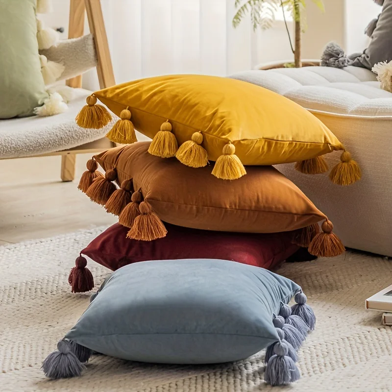 Bestelle deine Velvessa | Boho Kissenbezug mit handgefertigten Quasten | Weicher Samt Jetzt mit 50% Rabatt und Kostenloser Versand!