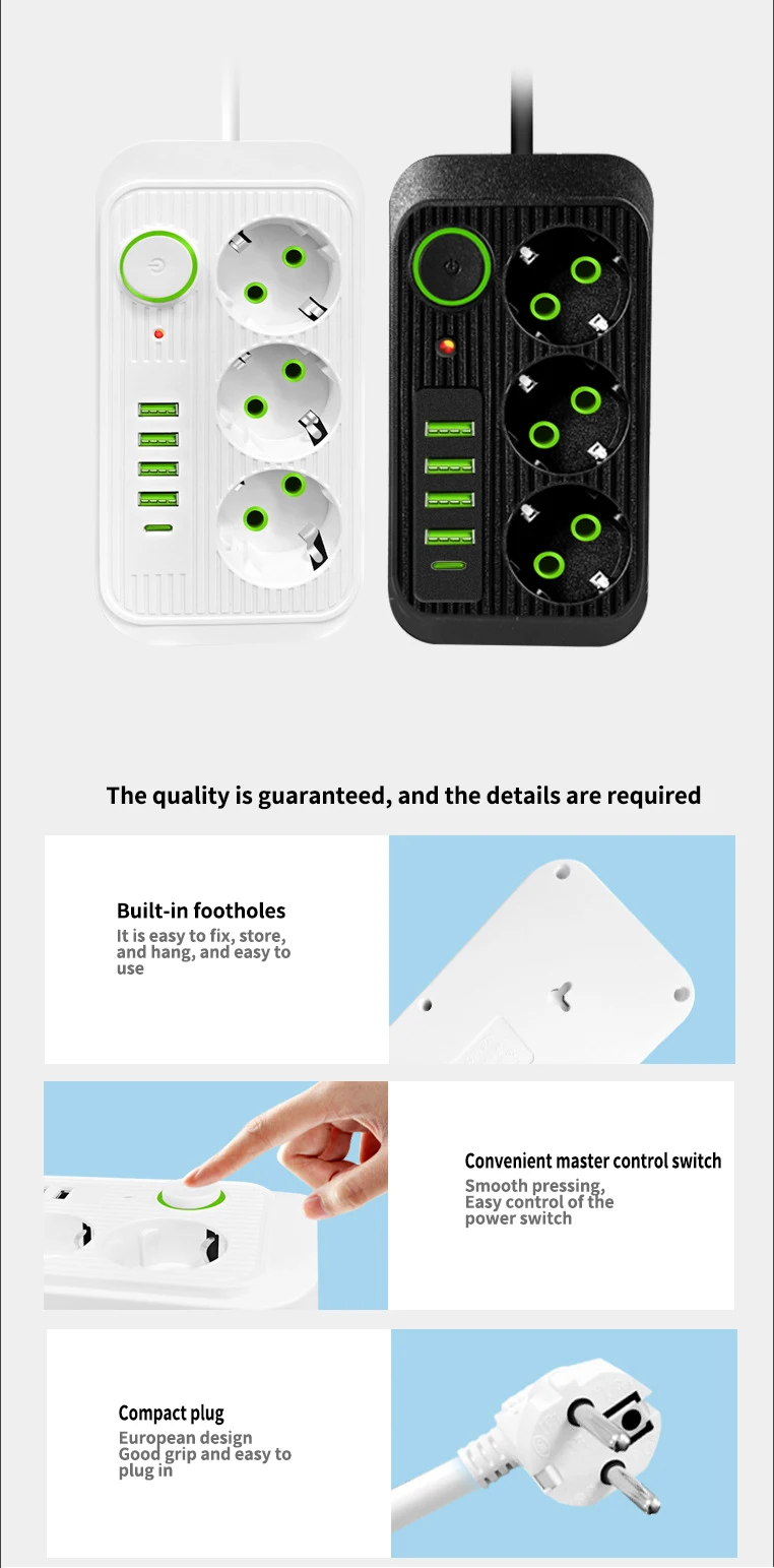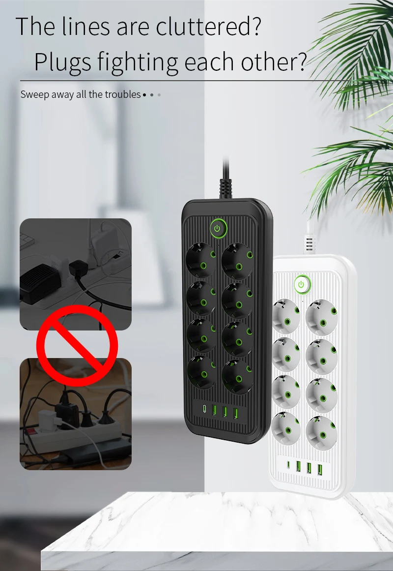 📌 Vielseitige Anschlüsse: Je nach Modell bis zu 8 EU-Steckdosen, 4 USB-Ports und 2 Typ-C-Anschlüsse – perfekt für Smartphone, Laptop, Tablet & Co.