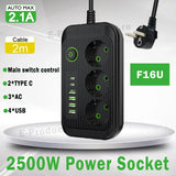 F09: 3 × EU-Steckdosen, 4 × USB, 1 × Typ-C
